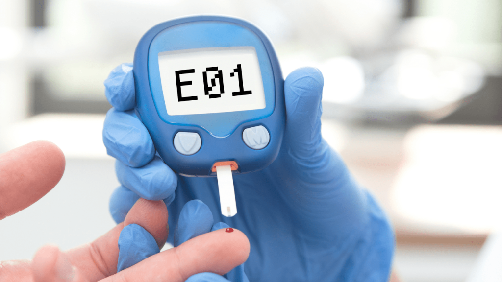 - Kode ini bisa muncul saat volume darah yang digunakan terlalu sedikit. Pastikan ada cukup darah pada strip tes.